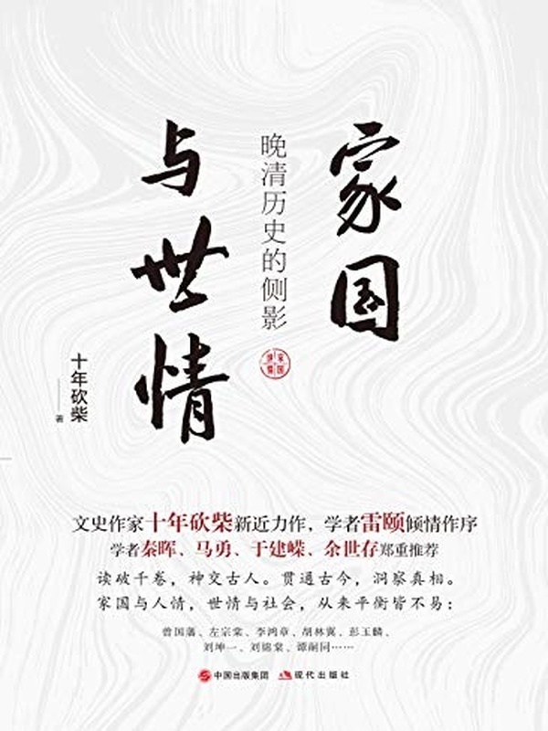 《家国与世情:晚清历史的侧影》是著名文史作家十年砍柴的新近力作。本书在晚清大历史的框架下从家国与世情两个维度入手,呈现了曾国藩、左宗棠、李鸿章、胡林翼、彭玉麟、刘坤一等众多文臣武将的诸多历史细节,并从他们身边的朋友、幕僚等延伸开去看当时的历史和社会,深入探究家国与世情之于历史的影响和作用力,深度解析晚清王朝的命运以及个人命运的历史真相。