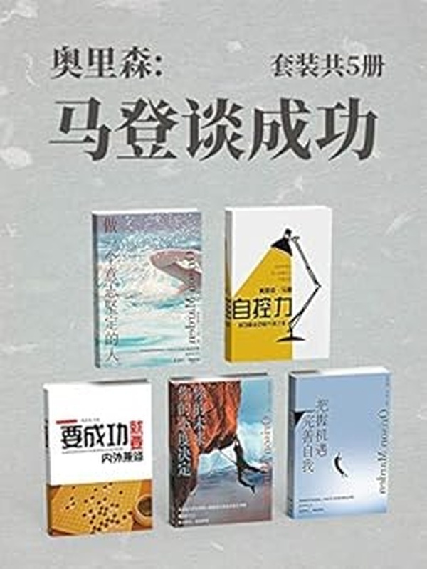 本套书包括《你的态度决定你的未来》、《完善自我,把我机遇》、《要成功就要内外兼修》、《自控力》和《做一个意志坚定的人》共5册。《你的态度决定你的未来》本书详述了个人外部信息、语言沟通技巧、性格及内心、人际资源对成功所起的作用,作者善于运用详实的例子使情景再现,给人身临其境的感受。读者不但能够从本书中学会注重成功细节,且会对成功产生一种更加立体的认识。本书可谓凝结了奥里森·马登毕生的心血,所有案例皆为他对人生做出的抉择与反思,对我们的生活具有重大的指导意义。《完善自我,把我机遇》这本书可谓是马登成功励志中的大成之作,详述了个人外部信息、语言沟通技巧、性格及内心、人际资源对成功所起的作用,作者善于运用详实的例子使情景再现,给人身临其境的感受。本书可谓凝结了奥里森·马登毕生的心血,所有案例皆为他对人生做出的抉择与反思,对我们的生活具有重大的指导意义。希望更多的读者能够从中受益。