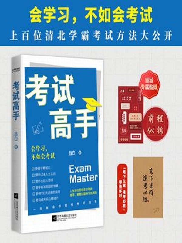 高分 = 对的方法×1000小时刻意练习 从小到大,我们每个人都会经历无数次考试,但举足轻重的,只有那么几次。 经常有人可以在大考中超常发挥,脱颖而出;也总有人发挥失常,惨败收场。面对竞争压力、学科难度、考场突发状况等一系挑战,真正的考试高手,会在一次次的历练中,深度探索学习、考试与成长的关系,完成自我提升。 人生的关键时刻,如何步步为“赢”? 其实,那些看似难以解释的“考试运”,完全可以靠自己养成。 认真读完这本考试“秘诀”,它将帮助你完成考前归纳整理,掌握答题技巧,调整应试心态,增强抗压能力,自信冷静地应对考试,在每一次大大小小的考试中,修炼自己的“考试运”。 同时,我们也希望这本书能让每一位陪考家长放下焦虑,养足精神,帮助孩子走好成长中重要的每一步,为孩子未来的求学之路和职场生涯打下坚实的基础。